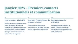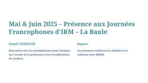 L'année écoulée a été marquée par une activité syndicale intense pour UNIMANIP. Fidèle à ses valeurs fondatrices, notre organisation a poursuivi un objectif constant : défendre la reconnaissance, les conditions d'exercice, la sécurité et l'avenir de la profession de manipulateur en électroradiologie médicale (MERM), dans les secteurs public et privé.