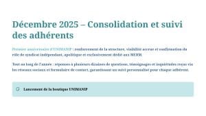 Ce rapport moral retrace, mois par mois, les principales actions, prises de position et interventions menées par UNIMANIP, telles que publiées sur notre site internet unimanip.org, ainsi que celles partagées via nos campagnes de communication et mailing auprès des adhérents.